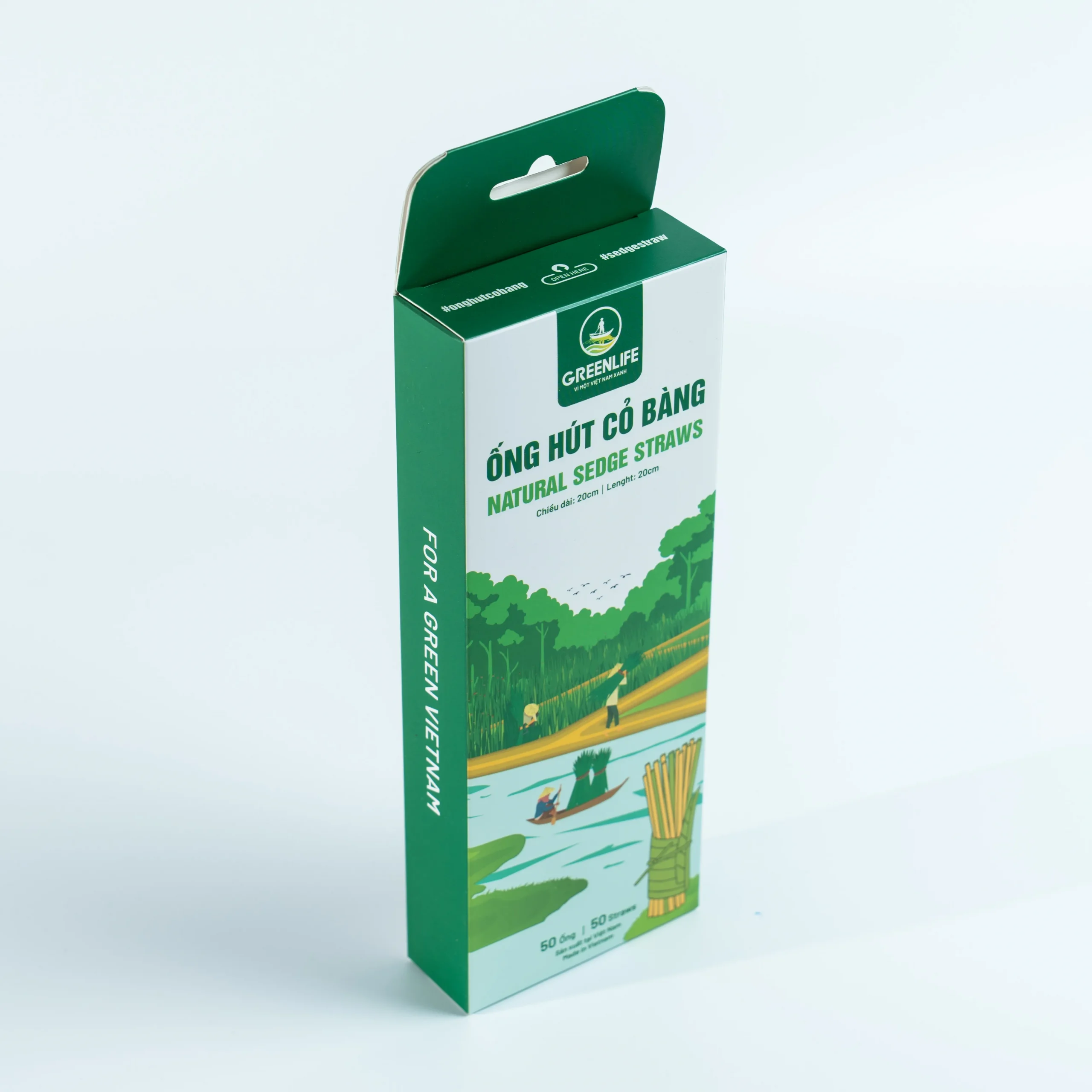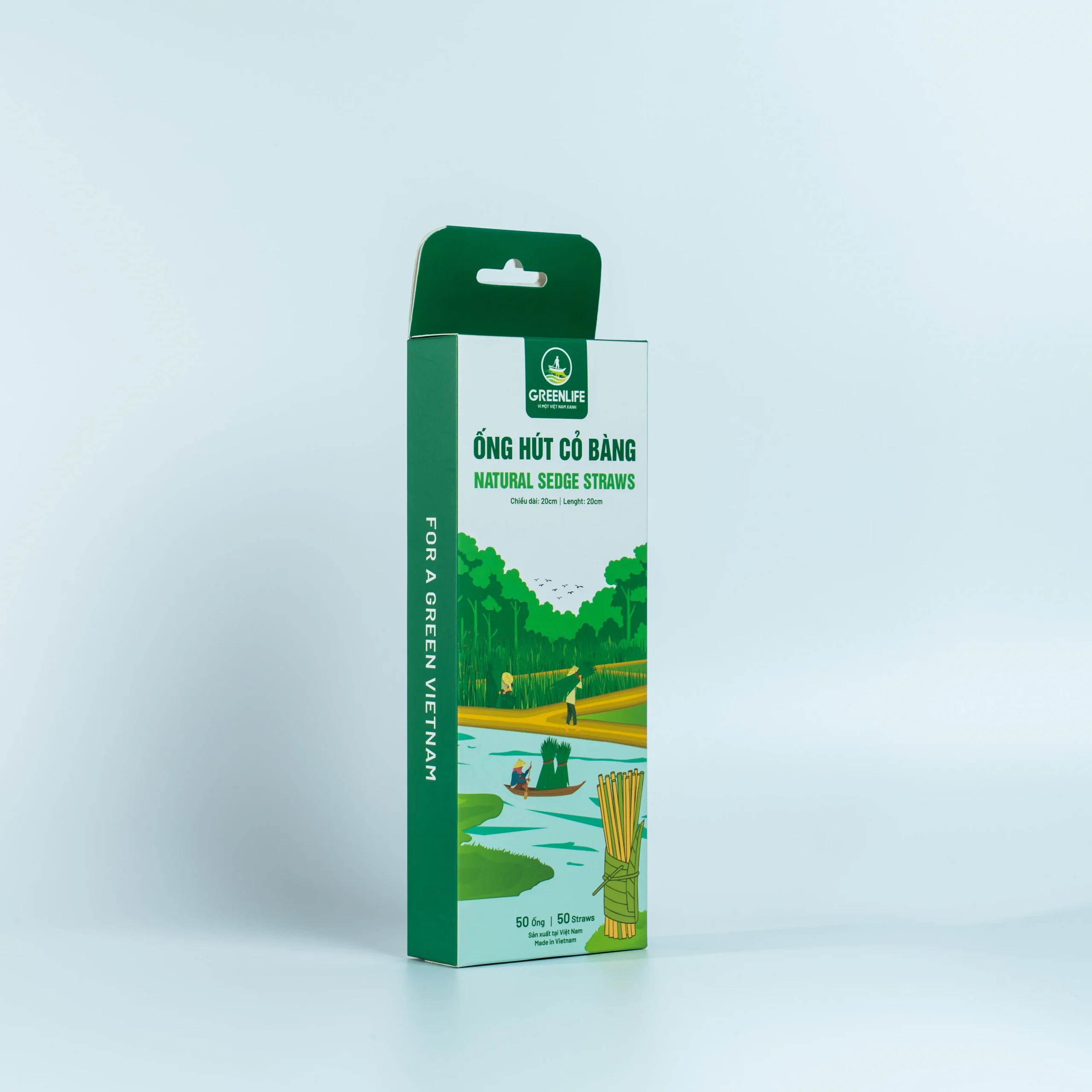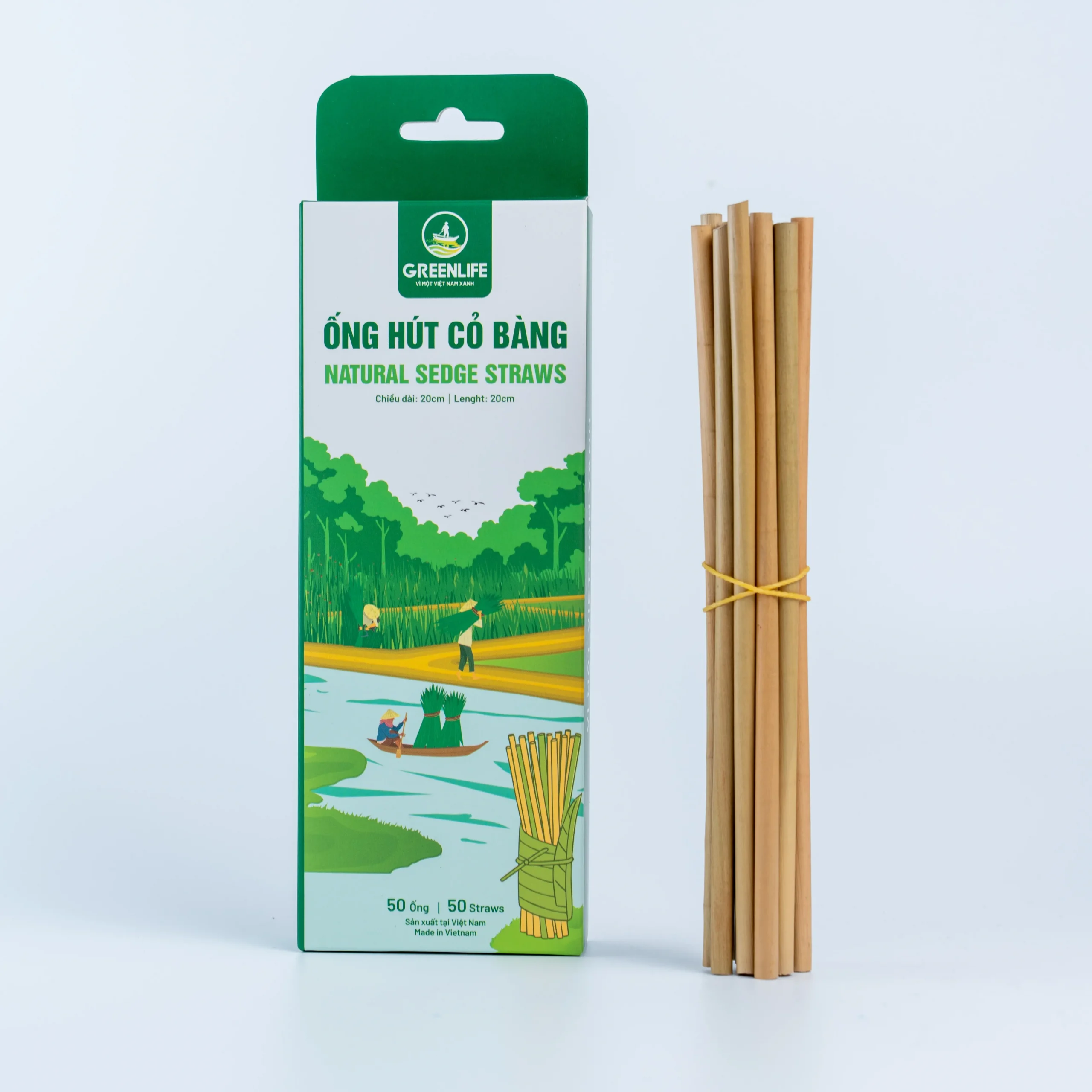 Ống Hút Cỏ Bàng GREENLIFE – Hộp 50 ống – Size 20cm